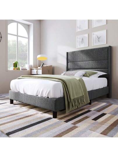 Upholstered Bed 90 X 200 Cm, Bed Frame With Slatted Frame & Headboard, Upholstered Double Bed, Textile Cover Linen In Grey, Timeless Modern Design, Youth Bed - Grey - View 1