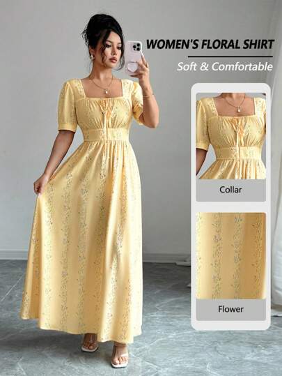 Elenzga Elegant Summer Printed Long Dress For Ladies - Yellow - View 1