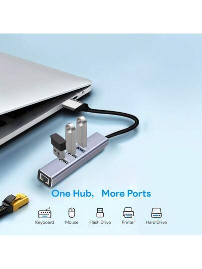 Usb 3.0 To Ethernet Adapter Gigabit With Ethernet Port & Aluminum 4-In-1 Usb Hub, Rj45 Lan Network Adapter Compatible With Imac, Pc, Chromebook Laptop, Etc. - Grey - View 1