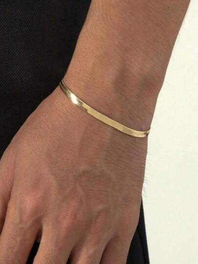 VJS Gold Snake Bone Texture Delicate Bracelet, Minimalist Luxury Metal Bangle, Versatile European & American Ins Style Fashion Accessory - Yellow Gold - View 1
