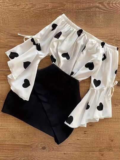 Vacation Outfits Women,Summer Outfits For Women Women's Fashionable Versatile Elegant Off-Shoulder Long-Sleeve Everyday Top - Black and White - View 1