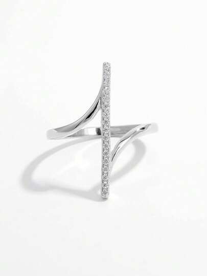 Vaerine 1pc Elegant & Creative & Unique & Personalized 925 Silver & Cubic Zirconia Design Ladies' Ring For Date To Show Elegant Gift - Silver - View 1