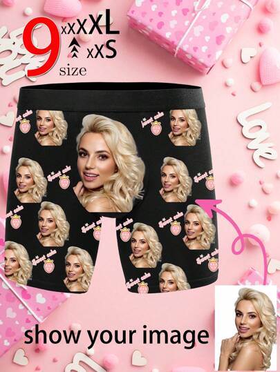 Valentine's Day Boxer Heart Valentine Boxer Picture Men Boxers Girlfriend Face Boxers Custom Thong,1pc,Gymboy - Black - View 9