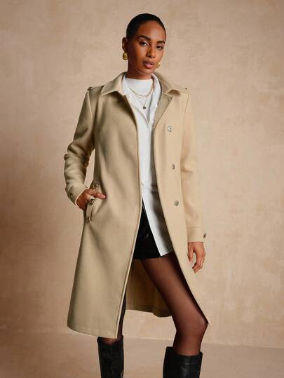 Vesra Women's Elegant Mid-Length Khaki Overcoat - Khaki - View 1