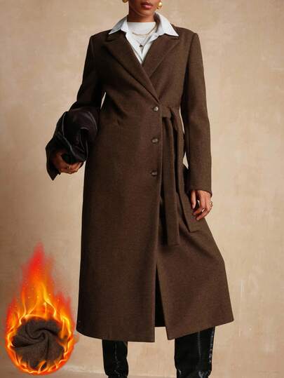 Vesra Women's Jacket With Turndown Collar, Long Sleeves, And Waist Tie Decoration - Brown - View 1