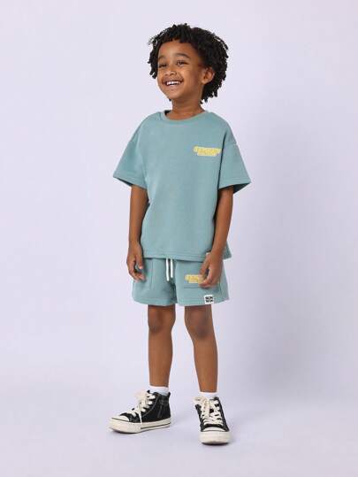 SUMWON Kids Wear Set Casual Short Sleeve T-Shirt And Shorts Matching Athletic Summer Outfit Comfortable Activewear Playwear Set - Green - View 1