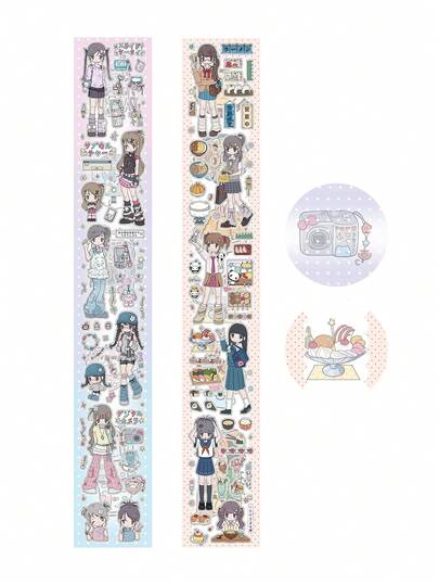 Vintage Masking Tape Roll, Girls Daily Stickers For Basic Collage, Character Journal, Cute School Supplies, Back To School - one-size - View 2