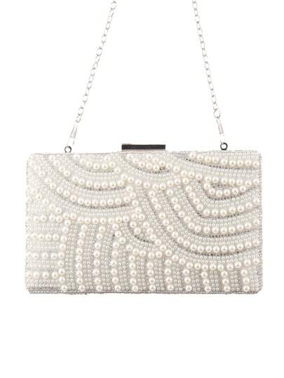 Vintage Pearl Beaded Clutch Bag, Handmade Rhinestones Studded Formal Party Purse For Women - Silver - View 1
