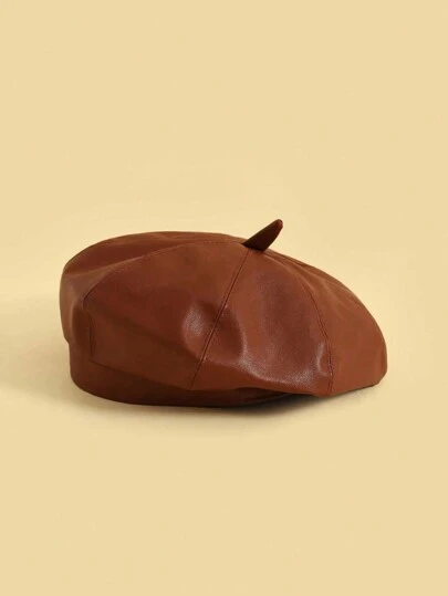 Vintage Simple Style Children's Beret - Chocolate Brown - View 1