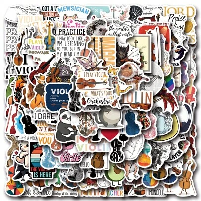 Violin Stickers 125Pcs Pack | Cool Colorful Graffiti Stickers Aesthetic Stickers, High Quality Stickers Scrapbook, Journaling, Laptop, Bumper, Skateboard, Water Bottles, Suitcase, Decorative Paper, Refrigerator, Car, Plan Book, Rewards Stickers - Violin Stickers - View 10