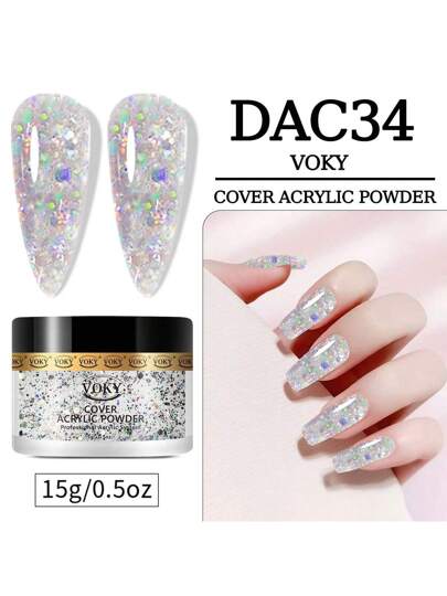 Voky 1pc 15g Crystal Powder Glitter Durable Nail Powder For Nail Extension & 3d Nail Art, Suitable For Nail Salon/Diy Nail Art/At-Home Nail Art, Multiple Colors Available - Multicolor - View 1
