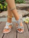 Wide Fit Women's Square Toe Hollow Breathable Sandals, Soft Bottom Comfortable Flat Shoes, Summer Vacation Style Daily Casual Beach Footwear