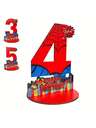 1pc Spider-Themed 4th Birthday Number Centerpiece Decoration, Spider Design Number Stand, Wooden Table Decor Photo Prop, Spider 4th Birthday Party Supplies