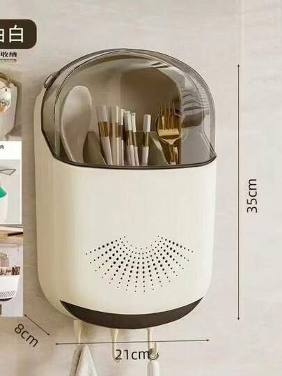Wall-Mounted Chopstick Holder, Antibacterial Draining Rack, Kitchen Storage Organizer, Dust-Proof Hanging Chopstick Container - White [punch-free Installation] - View 1
