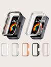 1 chiếc Ốp lưng bảo vệ đồng hồ thông minh bằng PC rỗng một nửa đính đá Rhinestone thời trang màu trơn, tương thích với Band 10/9/8, có thể đeo cả ngày