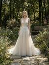 NEWYOUKEFEIER Spaghetti Strap V-Neck Lace Embroidered Champagne Long Wedding Dress, Suitable For Outdoor, Lawn, Beach Weddings