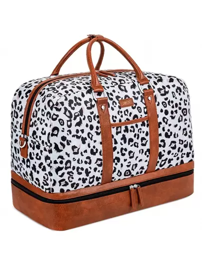 Weekender Bags For Women, Large Overnight Bag Canvas Travel Duffel Bag Carry On Tote With Waterproof Wet And Dry Separation Shoe Compartment 21" For Women & Men,Large Capacity Durable Handle Overnight Bag Carry On Back Side Sleeve With Pocket,Grey Leopard,Casual Style Fashion Style Travel Bag Traveling Bag Travel Kit Travel Stuff Travel Organizer Travel Essentials Travel Accessories Vintage Luxury - Light Grey - View 1