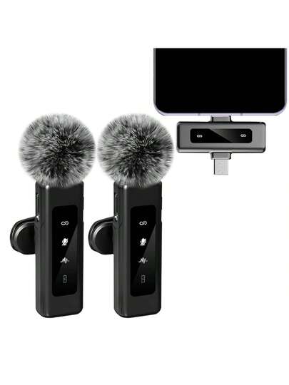 Wireless Lavalier Microphone For IPhone, Android, PC, Laptop - Professional Dual Clip-On Mic With USB-C/USB Interface For Video Recording, Android, Vlogging, Compact And Lightweight, Compatible With PC, IOS, Android For Vlog And Live Streaming - YJH-dX16 - View 1