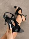 Women's High Heels, Suitable For Spring/Summer, Night Party, Travel, Shopping, Gathering, Runway, Commute, Dating, Fashion Socialite, High-End Banquet, Valentine's Day Gift, Spring Festival, Elegant Black Color With Curved Edging, Wide Face, Adjustable Ankle Strap, Small Kitten Heel, Glossy Mirror Finish, Comfortable Material, Matching Autumn Dresses, Skirts, Sexy, Avant-Garde, Elegant, Luxurious, Mysterious, High-End, Brightening, Rose Red High Heel Sandals