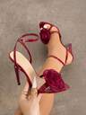 Women's High Heels, Suitable For Spring/Summer Night Parties, Outdoor, Travel, Shopping, Gatherings, Runway, Commuting, Banquets, Fashion Elegant Design With 3D Bow, Rivets, Comfortable Lace Mesh Floral, Adjustable Ankle Strap, Kitten Heel, Solid Color Mirror Surface, Comfortable Material, Matching Autumn Dresses, Mature And Versatile, Wine Red High Heel Sandals