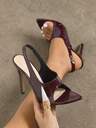 Women's High Heel Sandals, Fashion High-End Party Outdoor Stiletto Heels, Pointed Toe, Shiny Textured Material, Sexy & Elegant, Ankle Strap, Burgundy Color, Suitable For Spring/Summer