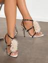 Women's High Heels, Spring/Summer Nightclub & Outdoor Fashionable Fine High Heel Pointed-Toe Sandals With Shiny Stone Texture & Elegant Nude Colored Strap