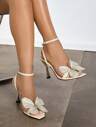 Women's Fashionable Pointed Toe High Heels, Glitter Mirrored Finish, Stiletto Heels, Ankle Strap Design, Elegant And Sexy For Parties, Outdoor Events, Suitable For Spring/Summer