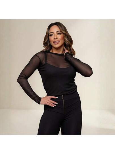 6. Women's Tulle Blouse With Long Sleeves And Versatile See-Through