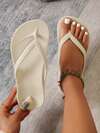 Women's Simple And Casual Slouchy Beach Shoes, Black, With Cross Straps, Wedge Heel, Round Toe, Soft Fabric, Flat, Everyday All-Match Toe Ring Slippers