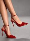 CUCCOO BIZCHIC Women's Pointed Toe Stiletto High Heel Slip-On Pumps, Low Vamp With Ankle Strap, Party & Spring Shoes For Christmas Spring Shoes