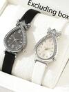 2pcs/Set Fashionable Minimalist Style Women's Quartz Watch With Leather Strap, Teardrop & Snake Shape Watch Set