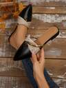Khaki Slip-On Mule Shoes, Pointed Toe Loafers For Women, Suede Leather One-Piece Bow Decor, Backless Design, Elegant & Versatile, Suitable For Spring & Autumn