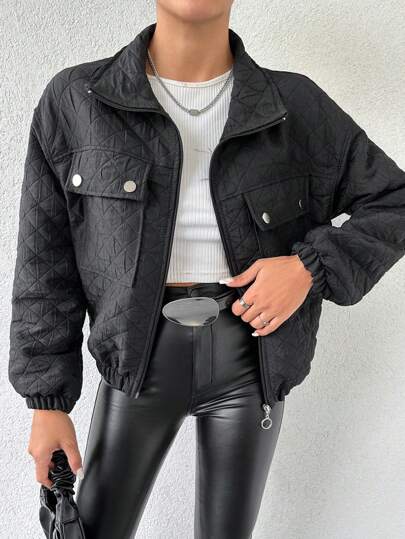 EURMUSE Women'S Drop Shoulder Jacket - Black - View 1