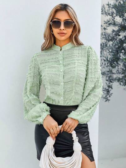 Aveloria Women'S Jacquard Long Sleeve Shirt - Green - View 5