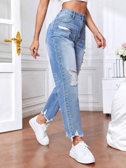 SHEIN Tall Women'S Ripped Jeans - Blue - View 1
