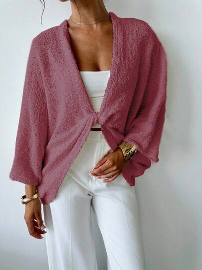 EURMUSE Women's Crossed V-Neck Loose Elegant Minimalist Sweater - Rusty Rose - View 1