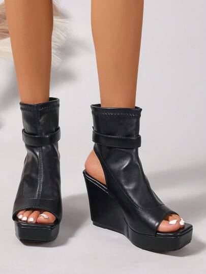 Women's Fashion Roman Style High-Top Sandals, Vintage Thick Platform Wedge Heel Zip-Up Gladiator Sandals - Black - View 1
