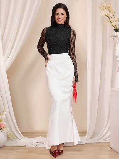 Chiquease Women's Fitted Lace High Neck Rhinestone Decor Top - Black - View 1
