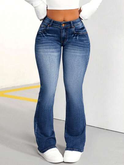 SHEIN PETITE Women's Flared Jeans - Blue - View 1