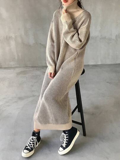 FRIFUL Women's Knitted Sweater Dress, Casual Minimalist Style For Daily Wear Turtleneck Women - Multicolor - View 1