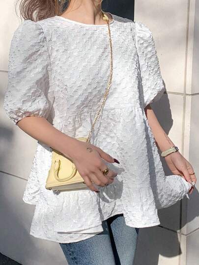 FRIFUL Women's Loose Textured Fabric Ruffle Trim Blouse - Apricot - View 1