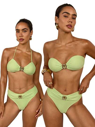 SHEIN Swim Women's Luxury Sexy Diamond Decor Bandeau Bikini Set For Summer Beach Vacation - Green - View 1