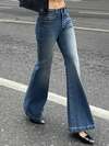 ROMWE Grunge Punk Punk Chic Vintage Embroidered Fitted Low Waist Flare Jeans, Light Blue
