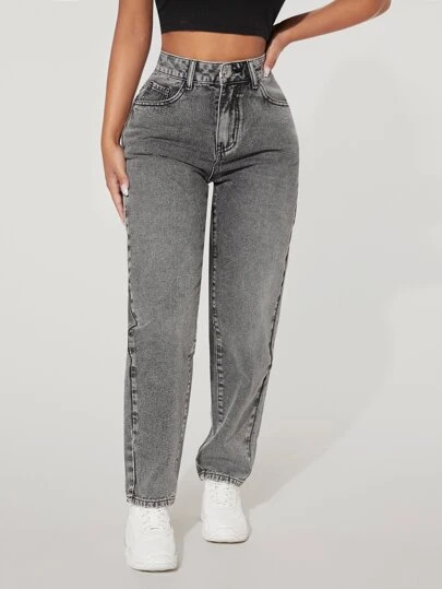 SHEIN Tall Women's Pocketed Straight Leg Loose Casual Versatile Jeans - Light Grey - View 1