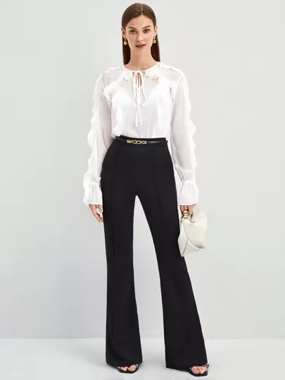 BizChic Women's Ruffle Neckline Tie-front Shirt - White - View 1