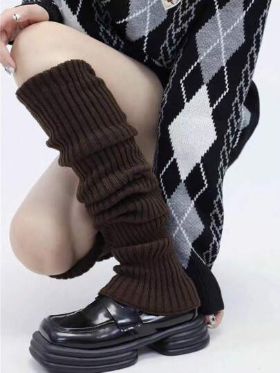 ROMWE Kawaii Women's Solid Color Leg Warmers - Brown - View 1