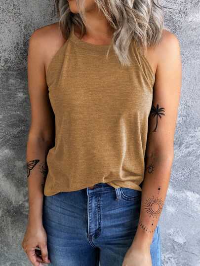 Women's Solid Color Loose Casual Halter Neck Tank Top - Brown - View 1