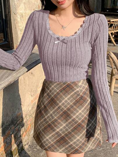 DAZY Women's Solid Color Round Neck Long Sleeve T-Shirt, Autumn - Pink - View 1