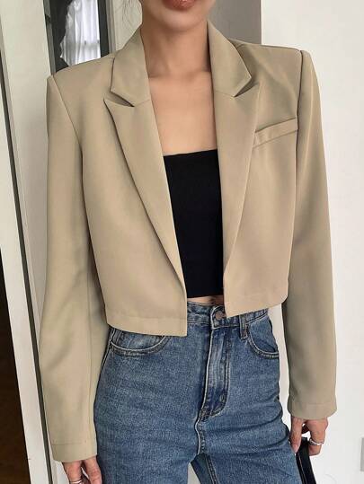 Livesso Women's Turn-Down Collar Short Solid Casual Blazer Business Attire - Beige - View 1