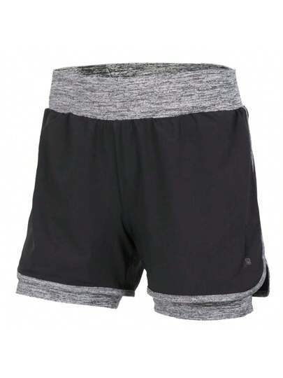 ENERGETICS Women's Two-Tone 2-In-1 Casual Running Shorts - Black/heather Grey - View 1